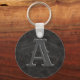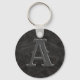 Rustic Black Leather Texture Monogram Initial Key Ring