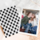 This simple and classic black plaid Merry Christmas holiday photo card features a one photo front with elegant white typography, and a rustic black and white plaid pattern on the back.