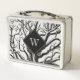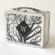 Rustic Black White Abstract Tree Branches Monogram Metal Lunch Box