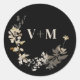 Rustic Black White Botanical Monogram Wedding Classic Round Sticker