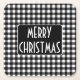 Rustic Black & White Buffalo Plaid Merry Christmas Square Paper Coaster