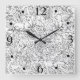 Rustic Black White Forest Animal Fox Rabbit Sketch Square Wall Clock