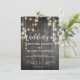 This rustic boho inspired wedding invitation template features string lights with a rustic brown wood background. All text style, colours, sizes can be modified to fit your needs.