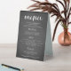This rustic wedding menu table sign is set on a blackboard background to match a rustic theme. Display on tables at your reception let your guests know the menu!