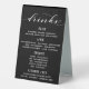 Swash font calligraphy bar menu with white lettering on chic black background