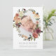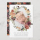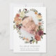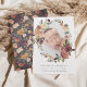 Elegant botanical birth announcements feature your sweet little one's photo encircled by an oval wreath of lush green foliage and watercolor flowers in autumn hues of burgundy and blush. Personalise with your baby's name and birth stats beneath.