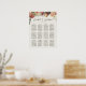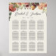Wedding guest seating chart features your names in elegant calligraphy script script lettering, with your wedding date and guest table assignments beneath. Space provided for up to 12 tables. Designed to mach our Rustic Bloom wedding and event collection, with watercolor florals and foliage in muted autumn earth tones.