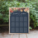 Wedding guest seating chart features your names in elegant calligraphy script script lettering, with your wedding date and guest table assignments beneath. Space provided for up to 12 tables. Designed to mach our Rustic Bloom wedding and event collection, with watercolor florals and foliage in muted autumn earth tones.
