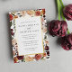 A showstopper in rich earth tones, this elegant floral wedding invitation or fall or winter weddings features your details framed by watercolor roses, mums and greenery in rustic autumn colours including peach, ivory, blush, burgundy and green. Gold foil trim completes the look for a luxe touch.
