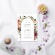 Elegant floral wedding invitations or fall or winter weddings feature your details framed by an arch of watercolor roses, mums and greenery in rustic autumn colours including peach, ivory, blush, burgundy and green, with sleek gold foil trim and gold calligraphy script lettering on a white background. A modern and elegant design for rustic chic weddings in the fall or winter months.
