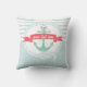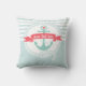 Blue and white rustic stripes background with a rope, anchor and banner. This pillow is customisable.