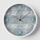 Rustic Blue Beach Wood with Seashells Clock
