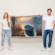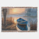 Rustic blue boat Morning Sky Reflection Throw Blanket