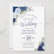 This beautiful wedding invitation features formal wording where the parents of the bride are hosting the ceremony. The design is a beautiful hand painted watercolor with roses, leaves, and greenery in dusty blue, navy, indigo, and sage. Beautiful way to invite your friends and family to help you celebrate your special day.
