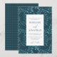 This beautiful design features chic rustic blue leaves and foliage and an elegant dark background with dots on the back.