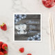 Dark Blue Boy Elephant Rustic baby shower custom napkins , floral blue flowers watercolor wooden background. Great add-on for the boy baby shower. Rustic elephant with navy winter hat.