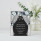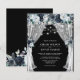 Cheap elegant navy wedding invitations featuring a trendy chalkboard black background that can be changed to any colour, rustic boho blue watercolor flowers, string lights, and a modern wedding template.