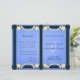 Rustic Blue Floral – © Sunny Mars Designs. Unique classy formal customisable custom vintage rusty elegant foldable wedding program template with ribbon borders, modern pretty white flowers on old parchment paper background.