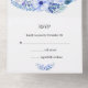 A practical (not to mention very elegant) blue floral rustic wedding invitation with RSVP included. The design features a beautiful, large watercolor wreath in blue with pretty blue flowers, leaves and blue berries adorning the wreath at the bottom.