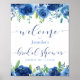 Rustic Blue Flowers Bridal Shower Welcome Sign Large Poster