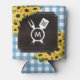 Rustic Blue Gingham Sunflowers Monogram Can Cooler