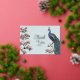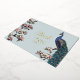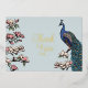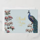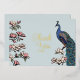This Rustic Blue & Gold Peacock Thank You Card features a modern Chinoiserie-style hand-drawn blue/teal peacock perched on a magnolia tree in full bloom. The back features personal Thank You message and Bride and Groom names.