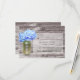 Rustic Mason Jar Blue Hydrangea Wood Background Wedding RSVP/Response Card.