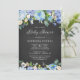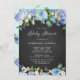 Rustic Blue Hydrangeas Chalkboard Baby Shower Invitation