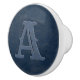 Rustic Blue Leather Texture Monogram Initial Ceramic Knob