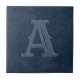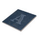 Rustic Blue Leather Texture Monogram Initial Ceramic Tile