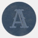 Rustic Blue Leather Texture Monogram Initial Classic Round Sticker