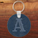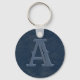 Rustic Blue Leather Texture Monogram Initial Key Ring