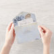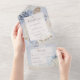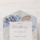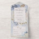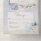 AVAILABLE WITH OR WITHOUT A QR CODE OR WITH OR WITHOUT DINNER SELECTION OPTIONS. This design features a beach themed frame of dusty blue coral, tan, cream and brown shells and starfish and sea life on a soft dusty blue background that has been distressed with champagne gold. Add a QR code to your invitation so that gusts can quickly access your wedding Website for details, directions, menu options, and more, or add your gift registry Web URL. Personalised All-In-One invitations are a unique combination of both a beautifully printed custom invitation with an easy to tear off perforated RSVP postcard. And they are so easy to use! You simply fold, then seal the back flap with the three included clear stickers, and mail. And when your guests receive your custom invite, they just tear the perforated RSVP Card off and drop it back in the mail to you!