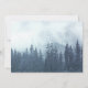 This rustic wedding rehearsal dinner invitation features an outdoor mountain wilderness scene of a forest of blue pine trees shrouded in mist or fog. The lettering is done in lacy script calligraphy, giving it a touch of elegance. Perfect for an outdoor, country, or destinations wedding.