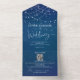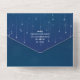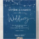 Rustic Blue Background with Beautiful String Lights Wedding Invitation. QR Code Individual Guest Names and Addresses Wedding All In One Invitation. PLEASE NOTE no envelope is necessary for this practical all in one invitation and RSVP. Add your QR code to your wedding website as a convenient option for your guests to RSVP or they can use the tear off section to post their reply back to you if they prefer. Your QR code will be automatically generated to update the sample code in the design, when you simply change the sample URL in the template with your own wedding website URL.