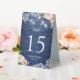 Rustic Blue String Lights Lace Floral Table Number Tent Sign.