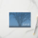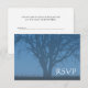 A tree of life themed RSVP response card. Featuring a blue tree silhouette.