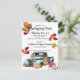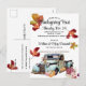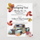 Watercolor autumn leaves, rusty orange-red and golden green, drift across this invitation. Anchoring the bottom are a rustic, rusty vintage blue truck and arrangements of pumpkins, flowers and foliage. The details for your "Thanksgiving Feast" gathering are in two contrasting fonts, a script font and a small, sans serif, both in black. It's simple to swap the details of your event for our placeholder information. On this versitile invitation, you can make the hours for brunch or dinner instead of lunch. Just click "Personalise" and get started. Your return address and personal note are on the back of the postcard. Again, the spacing is in place, you have only to swap your personal info for that of the placeholders or delete if you prefer a handwritten note.