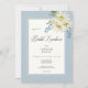 Introducing our charming new bridal shower luncheon invitation, designed to add a touch of rustic elegance to your special day. This exquisite design features a soft dusty blue background, complemented by a delicate white text box outlined with a thin floating frame. Crowned by a stunning spray of watercolor white and yellow daisies and delicate blue wildflowers, this invitation sets the perfect tone for your celebration. The soft hues and rustic design capture the essence of a countryside romance, making it an ideal choice. Created by Simply Farmhouse Press.