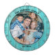 Personalised dartboard for family parties at the beach house.Add family photo ,family name and established year to the rustic dartboard with a coastal blue wood texture background.