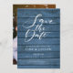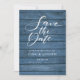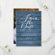 Rustic Blue Wood Elegant Script Photo Wedding Save The Date