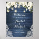 Rustic Blue Wood Lace Floral White Wedding Welcome Sign. Floral Burgundy Mason Jar Wedding Welcome Sign. Rustic Wood String Lights Welcome Sign