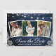Rustic Blue Wood String Lights and Lace 3 Photo Save The Date Engagement Announcement Card