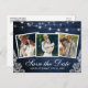 Rustic Blue Wood Lights Lace 3 Photo Save The Date Invitation Postcard