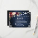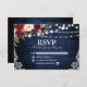 Rustic Blue Wood Lights Lace Floral Wedding RSVP Card
