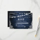 Rustic Blue Wood Lights Lace Wedding RSVP Card