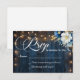 Rustic Blue Wood String Lights Floral Wedding RSVP Card