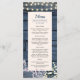 Rustic Blue Wood String Lights & Lace Wedding Menu