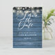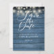 Rustic Blue Wood String Lights Script Wedding Save The Date