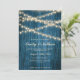 Rustic Blue Wood String Lights Wedding Invitation . This exquisite invitation seamlessly combines rustic charm and timeless elegance, setting the perfect tone for your special day.